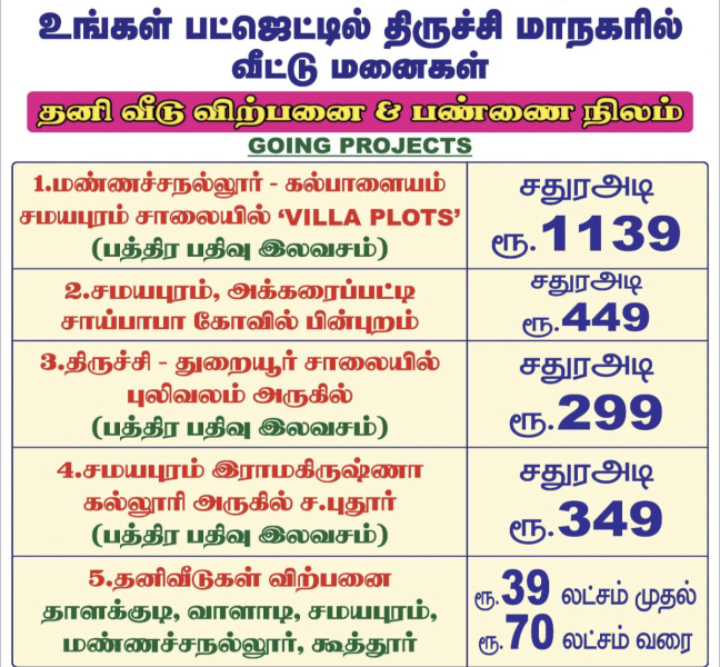Residential Plot For Sale In Samayapuram, Tiruchirappalli (950 Sq.ft.)